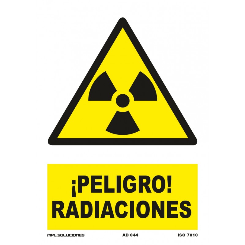 Señal que advierte sobre el peligro de radiaciones láser. Se utiliza en laboratorios, fábricas y áreas donde se usan láseres de alta potencia para evitar daños en los ojos o en la piel.