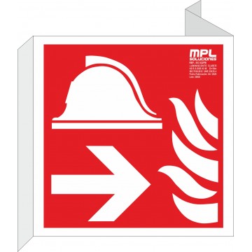 Señal que indica una escalera de emergencia a la derecha. Es vital para guiar a las personas por las escaleras de emergencia en una evacuación, asegurando una salida segura y ordenada.