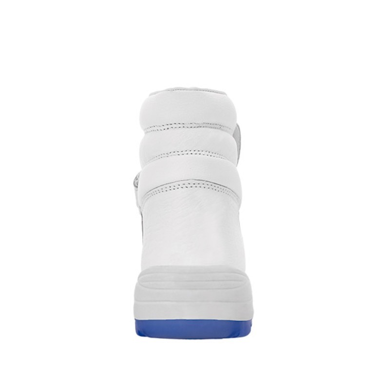 Zapato blanco antimicrobiano, fabricado en piel natural 1ª flor hidrófuga, con cierre ajustable.