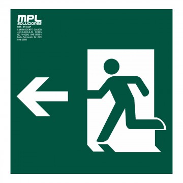 Señal que indica una salida de emergencia a la derecha. Es esencial para guiar a las personas de manera rápida y segura hacia un punto de evacuación en caso de incendio o cualquier otra emergencia.