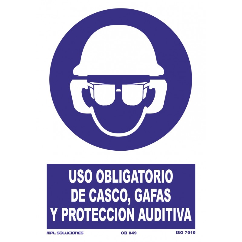 Señal de seguridad que indica el uso obligatorio de gafas antisalpicadura.
