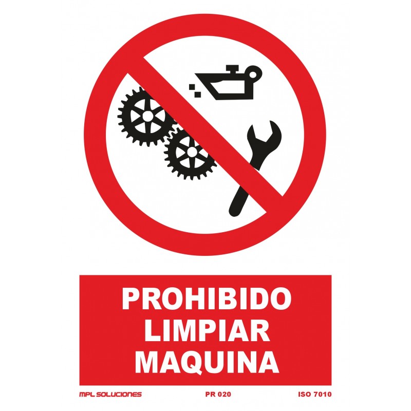 Señal que prohíbe realizar el mantenimiento de una máquina cuando está en marcha. Es crucial para la seguridad, ya que evita que las personas se enganchen o se atrapen en la maquinaria.