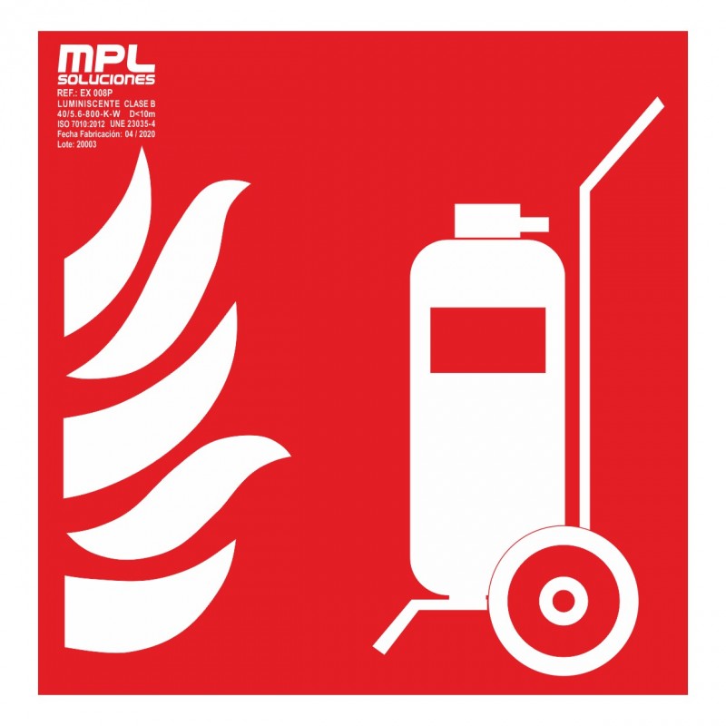 Señal que indica que la manguera de incendios se encuentra a la izquierda. Es una señal direccional que guía a las personas hacia la boca de incendios o la manguera más cercana.