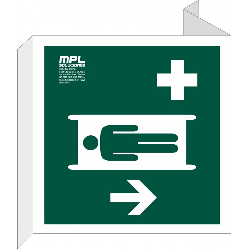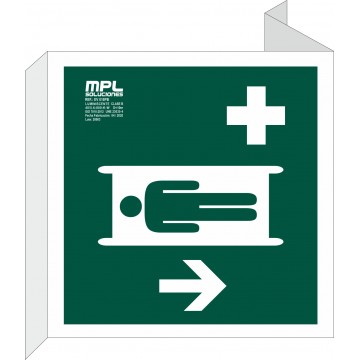 Señal que indica una estación de primeros auxilios. Se usa para indicar a las personas a un lugar donde pueden recibir ayuda médica en caso de emergencia.