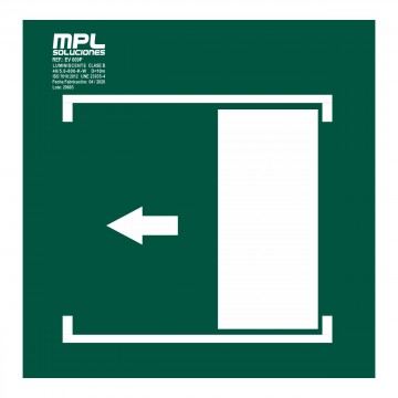 Señal que indica cómo usar la puerta de emergencia. Alerta a las personas sobre el mecanismo de apertura de la puerta, que se acciona presionando la barra. Es un mensaje directo y efectivo para garantizar una salida rápida en caso de emergencia.