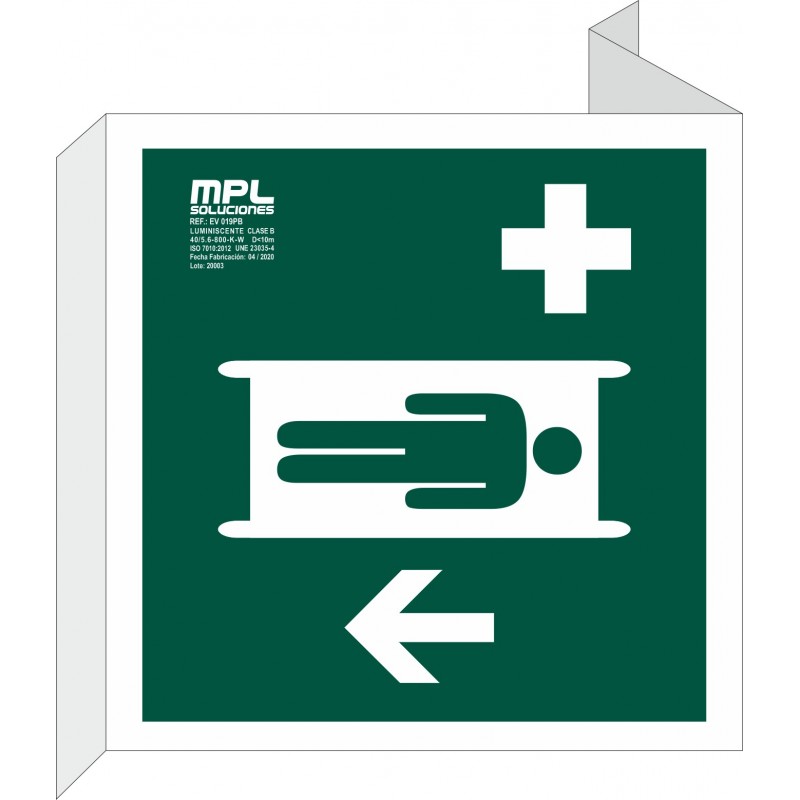 Señal que indica la salida de emergencia hacia la izquierda. Es un letrero fundamental en cualquier edificio para señalar una vía de evacuación en caso de incendio o cualquier otra situación de riesgo.