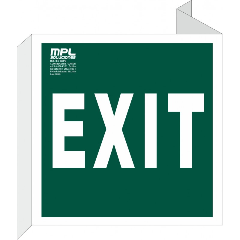 Señal que indica que la salida de emergencia se encuentra siguiendo la escalera a la izquierda. Sirve para guiar a las personas de forma clara y segura hacia el punto de salida en edificios de varias plantas.