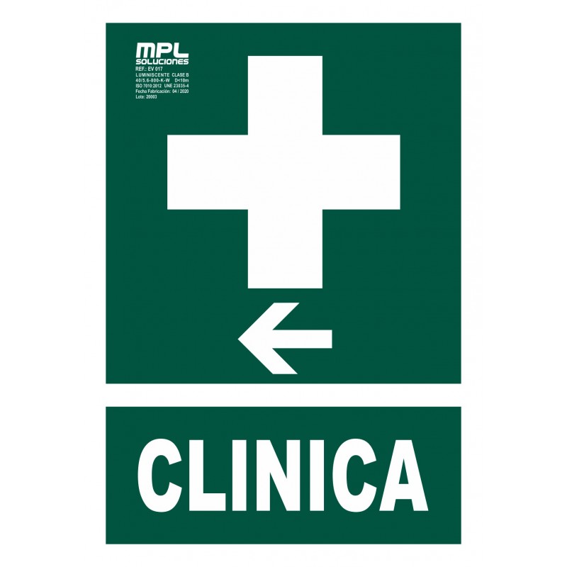 Señal que indica una estación de primeros auxilios a la izquierda. Se usa para guiar a las personas a un lugar donde pueden recibir ayuda médica en caso de emergencia.