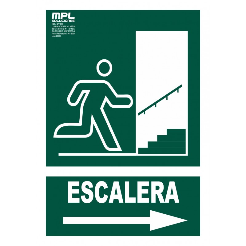 Señal que indica que la salida se encuentra en un nivel inferior. Guía a las personas por escaleras o rampas en dirección a la salida.