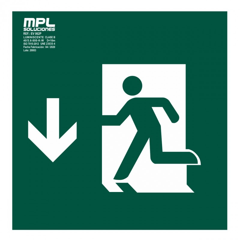 Señal que indica una salida de emergencia a la izquierda. Es esencial para guiar a las personas de manera rápida y segura hacia un punto de evacuación en caso de incendio o cualquier otra emergencia.