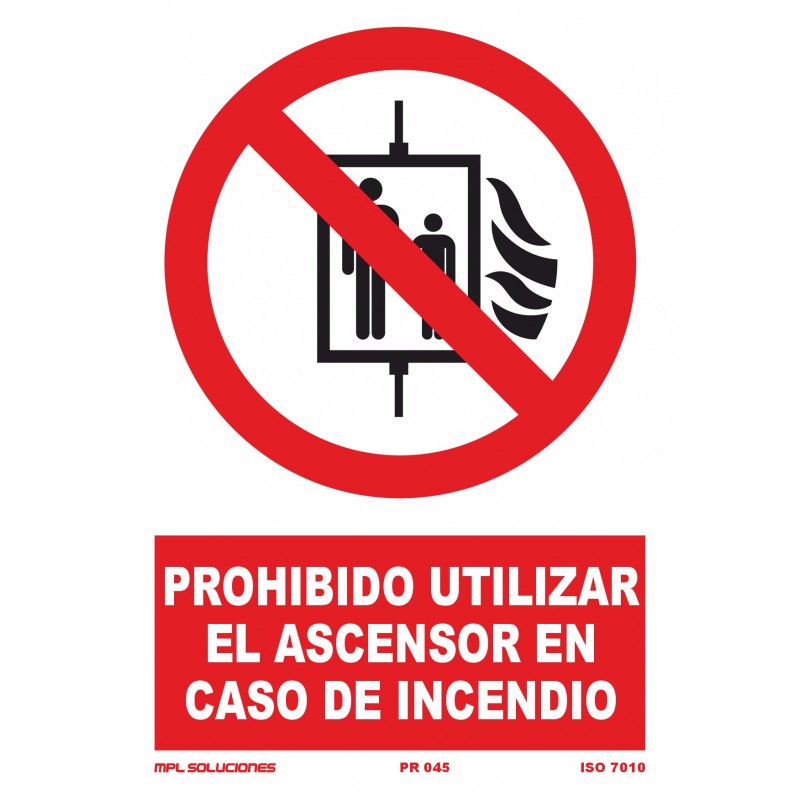Señal que prohíbe el acceso a una escalera. Se utiliza cuando la escalera está en reparación, dañada o cuando no es una vía de evacuación segura, evitando que las personas la utilicen.