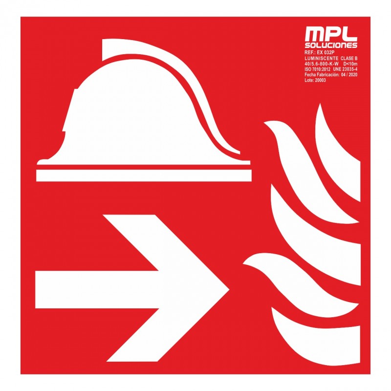 Señal que indica que la manguera de incendios se encuentra a la izquierda. Es una señal direccional que guía a las personas hacia la boca de incendios o la manguera más cercana.